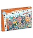 Un puzzle observation de 200 pièces pour partir à la recherche des animaux du zoo qui se sont cachés dans la ville. L’enfant crée son puzzle puis s’amuse à retrouver dans l’image les éléments de la frise.