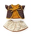 Ensemble de 4 pièces très tendance composé d’une jupe, d'un T-shirt et petite culotte assortie. L'élément principal est la veste matelassée avec ses manches courtes petits volants.